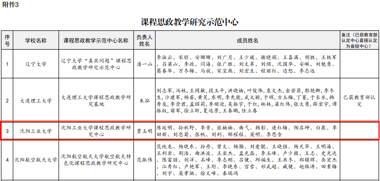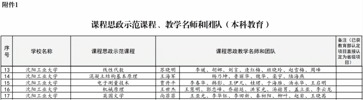 近日,遼寧省教育廳發布《關于對2023年省級普通高等教育課程思政示范項目遴選結果進行公示的通知》,我校申報的《線性代數》等5門課程全部成功入選省級普通高等教育本科教育課程思政示范課程、教學名師和團隊,我校沈陽工業大學課程思政教學研究中心獲批2023年省級課程思政教學研究示范中心。