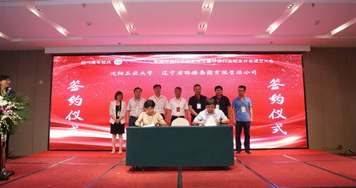 李英民宣讀了首屆環保行業校友理事成員名單,并向會長甄學志頒授會旗,向全體理事成員頒發聘書;副會長王興宣讀了沈陽工業大學首屆環保行業校友會章程并獲得與會人員一致通過。部分校友代表在會上做了交流發言;科技處處長曹云東、教務處處長蘇曉明分別代表學校與校友企業和部分單位簽署了校企、校地產學研合作協議;全體與會領導、嘉賓和校友共同佩戴70周年校慶紅圍巾合影留念。