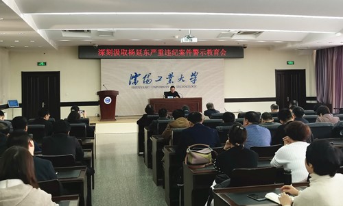 會上,按照省紀委和省委教育紀檢監察工委《關于以楊延東嚴重違紀違法案件為鏡鑒在省屬高校開展警示教育的通知》要求,組織觀看了警示教育片《書香不可染銅臭》。