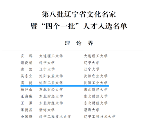 近日遼寧省委宣傳部下發(fā)了《關(guān)于印發(fā)第八批遼寧省文化名家暨“四個(gè)一批”人才入選名單的通知》,我校馬克思主義學(xué)院教師高健作為理論界代表成功入選。
