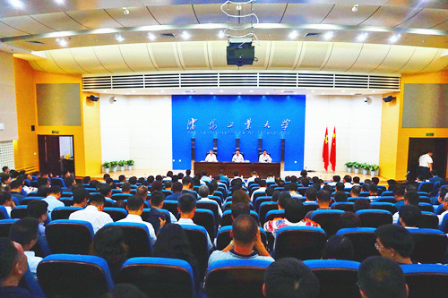 9月11日下午,學校黨委在科學會堂召開“不忘初心、牢記使命”主題教育啟動大會。省委第十一巡回指導組全體成員、全體校領導出席會議;中層領導干部、黨支部書記、教師黨員和學生黨員代表參加會議。會議由黨委副書記、校長郭連軍主持。