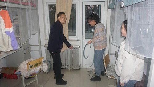 冬季來臨,溫度驟降,學生公寓供暖情況也成為學校黨委心里的牽掛。為確保所有學生度過一個溫暖舒適的冬天,11月8日傍晚,黨委書記劉自康親自帶隊深入學生公寓實地察看走訪,切實了解學生公寓供暖情況。