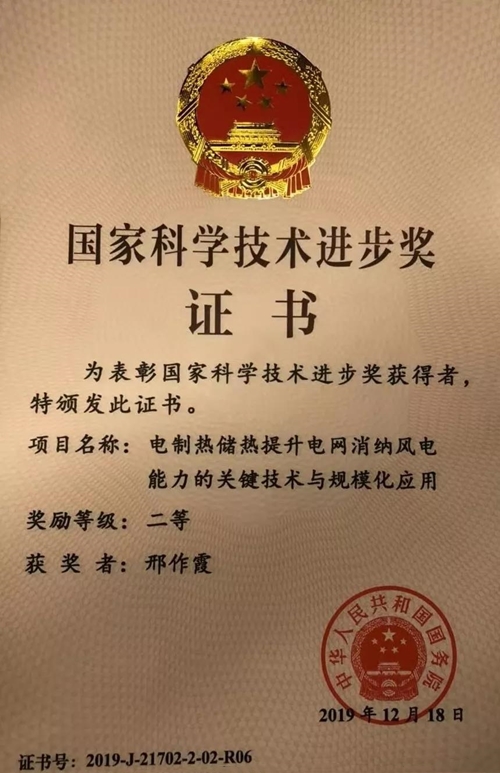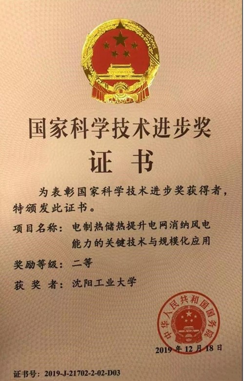 1月10日,2019年度國(guó)家科學(xué)技術(shù)獎(jiǎng)勵(lì)大會(huì)在人民大會(huì)堂隆重舉行。我校作為主要完成單位,邢作霞教授作為主要完成人的“電制熱儲(chǔ)熱提升電網(wǎng)消納風(fēng)電能力的關(guān)鍵技術(shù)與規(guī)模化應(yīng)用”項(xiàng)目,喜獲2019年度國(guó)家科學(xué)技術(shù)進(jìn)步獎(jiǎng)二等獎(jiǎng)。