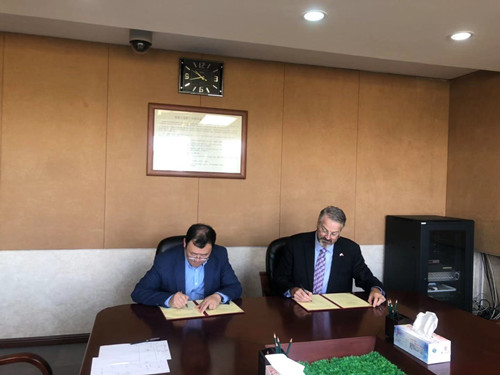 袁曉光與David Gerlach代表雙方學校簽訂了交流合作協議。