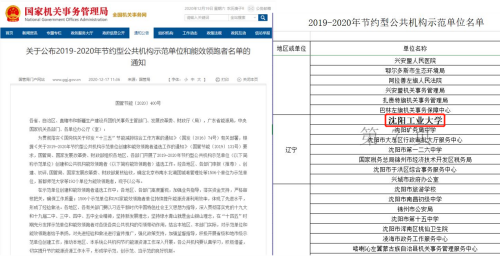 12月15日,國家機關事務管理局、發展和改革委員會、財政部聯合發文,公布了2019-2020年國家節約型公共機構示范單位名單,我校以遼寧省綜合排名第一的成績,榮獲國家級“節約型公共機構示范單位”榮譽稱號。這是繼獲得“2019年遼寧省節約型公共機構示范單位”后我校在節約型校園建設中取得的又一項突出成績。