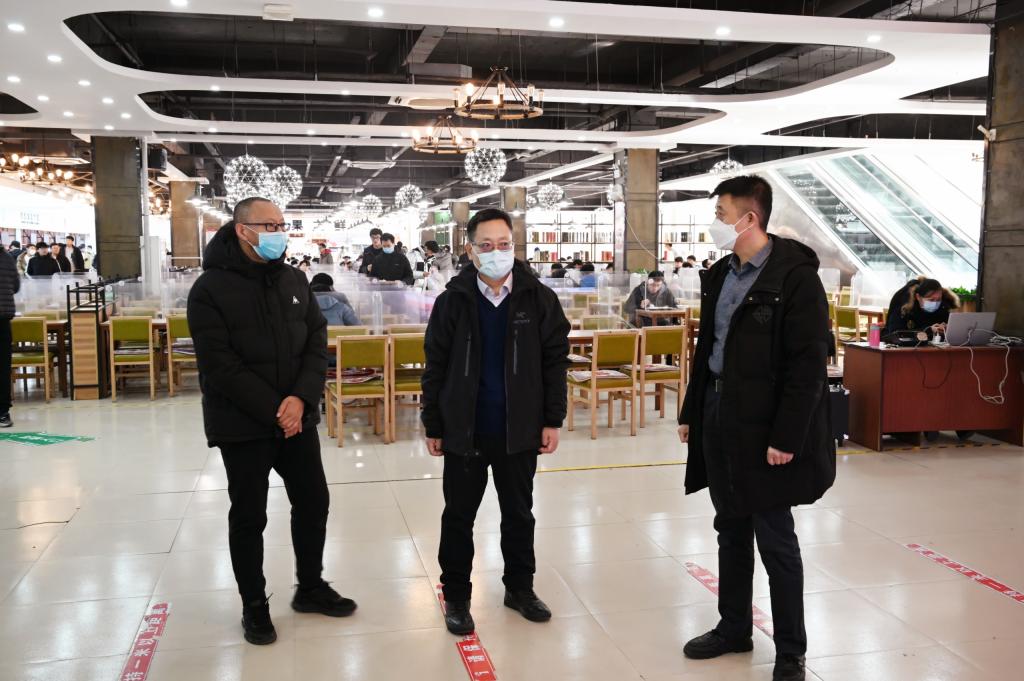 12月7日中午,黨委書記劉自康來到第一食堂,對教工餐補改革后的配套服務工作進行調研指導,實地查看食堂就餐和教工服務部建設情況。