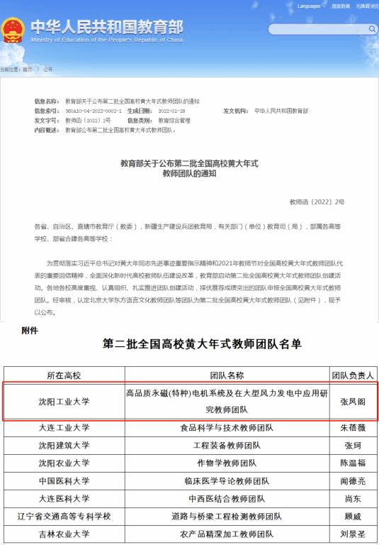 日前,教育部正式認定第二批“全國高校黃大年式教師團隊”,我校張鳳閣教授帶領的高品質永磁(特種)電機系統及在大型風力發電中應用研究教師團隊成功入選,全國共計200個高校教師團隊獲得認定。