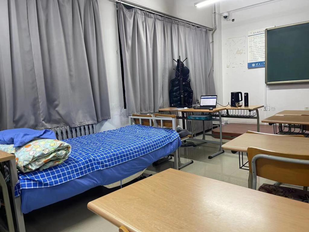 27日晚上,第一批50名教師志愿者進駐校內。“現在的工作條件比較艱苦,需要我們沖到一線,每天吃飯睡覺的時間都不能保證,需要干的也都是重體力活,大家一定做好防護。”學校疫情防控指揮部叮囑著老師們。“我們都是工大人,家里有事,我們必須往前沖。”老師們紛紛表態,“我們是來打仗的,還是場必須打贏的硬仗,苦點累點我們都能克服。”說話間,老師們已經帶著簡樸的行軍床到教學樓各自分配區域的教室里安營扎寨。