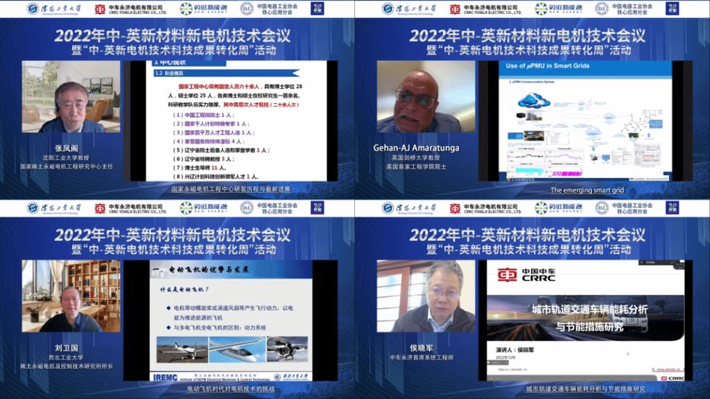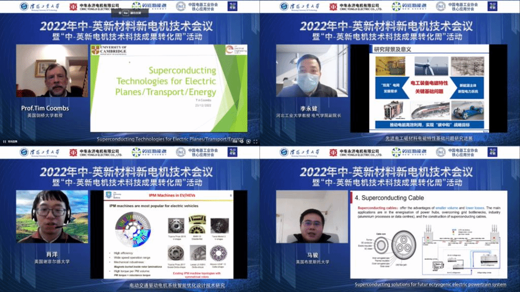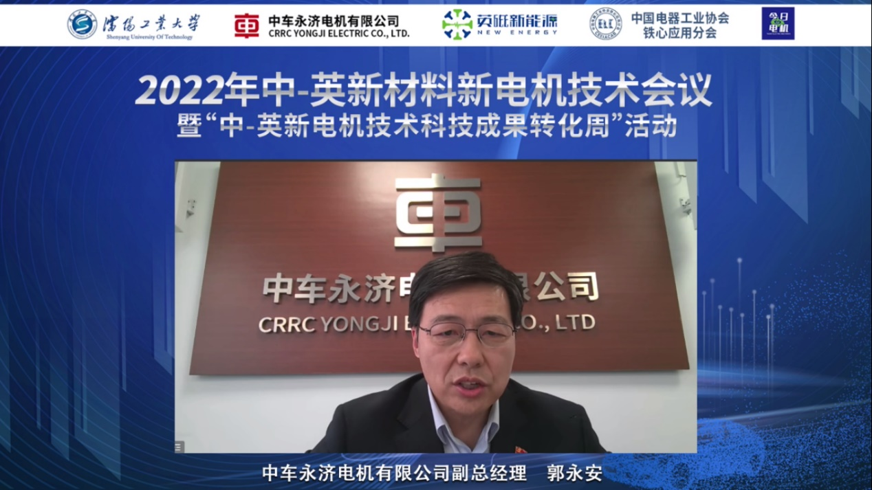 12月23日,2022年中—英新材料新電機技術會議暨“中—英新電機技術科技成果轉化周”活動于線上成功舉辦。本次活動由沈陽工業大學主辦,中車永濟電機有限公司、蘇州英磁新能源科技有限公司協辦,中國電器工業協會鐵心應用分會、今日電機提供技術支持。黨委常委、副校長柯麗,電氣工程學院院長楊俊友,中車永濟電機有限公司副總經理郭永安參加會議并分別致辭,中、英兩國8位專家作主旨報告。會議由電氣工程學院裴瑞琳教授主持,共計3747人次參與直播觀看交流。