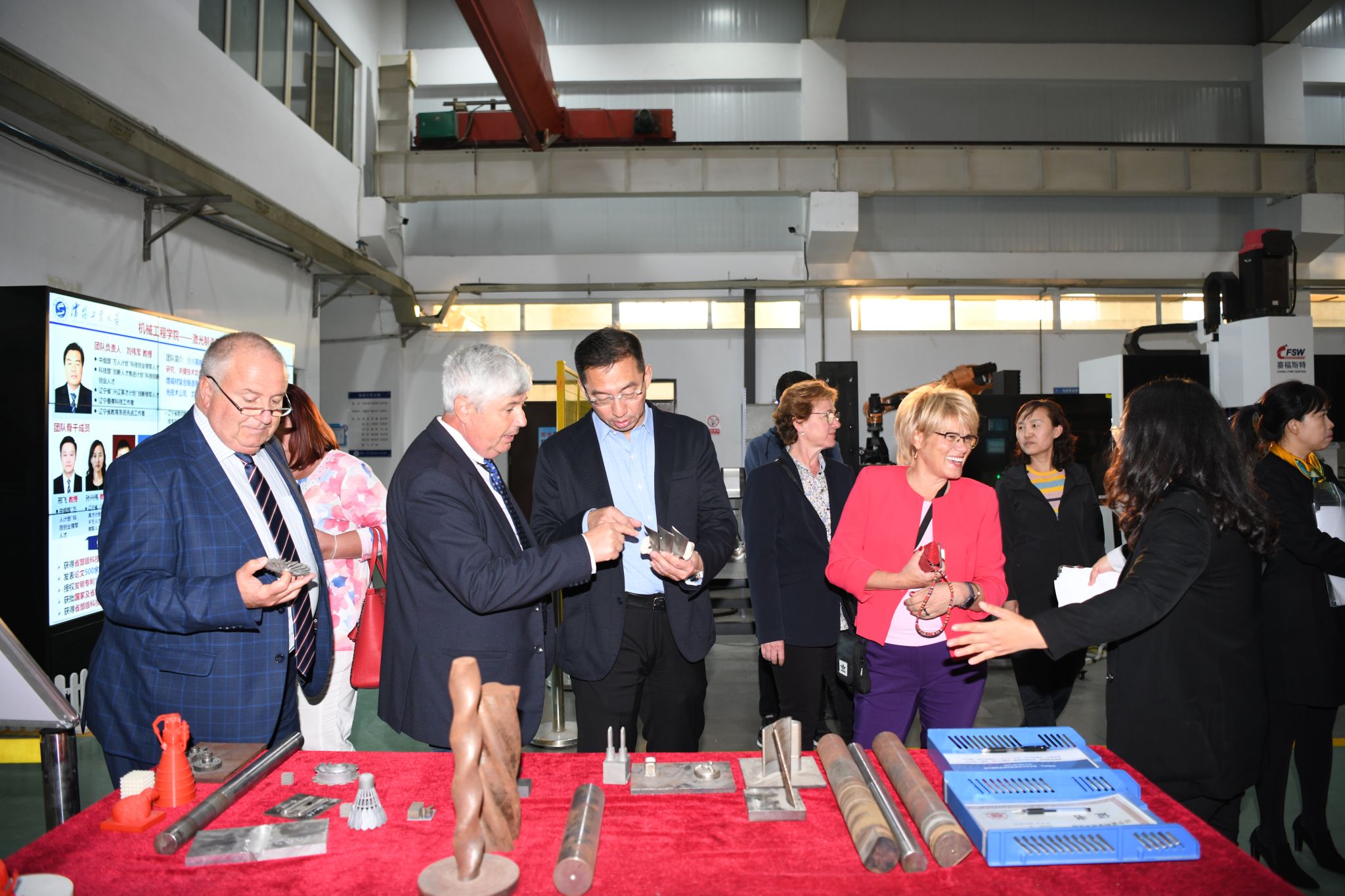 座談結束后,代表團一行參觀了我校教育部重點實驗室以及機械工程學院實驗室,并就實驗室的研究成果進行了深度的學術交流和探討。代表團一行還參觀了我校新落成的科技成果展館,了解我校在75年發展歷程中取得的諸多科研成果。