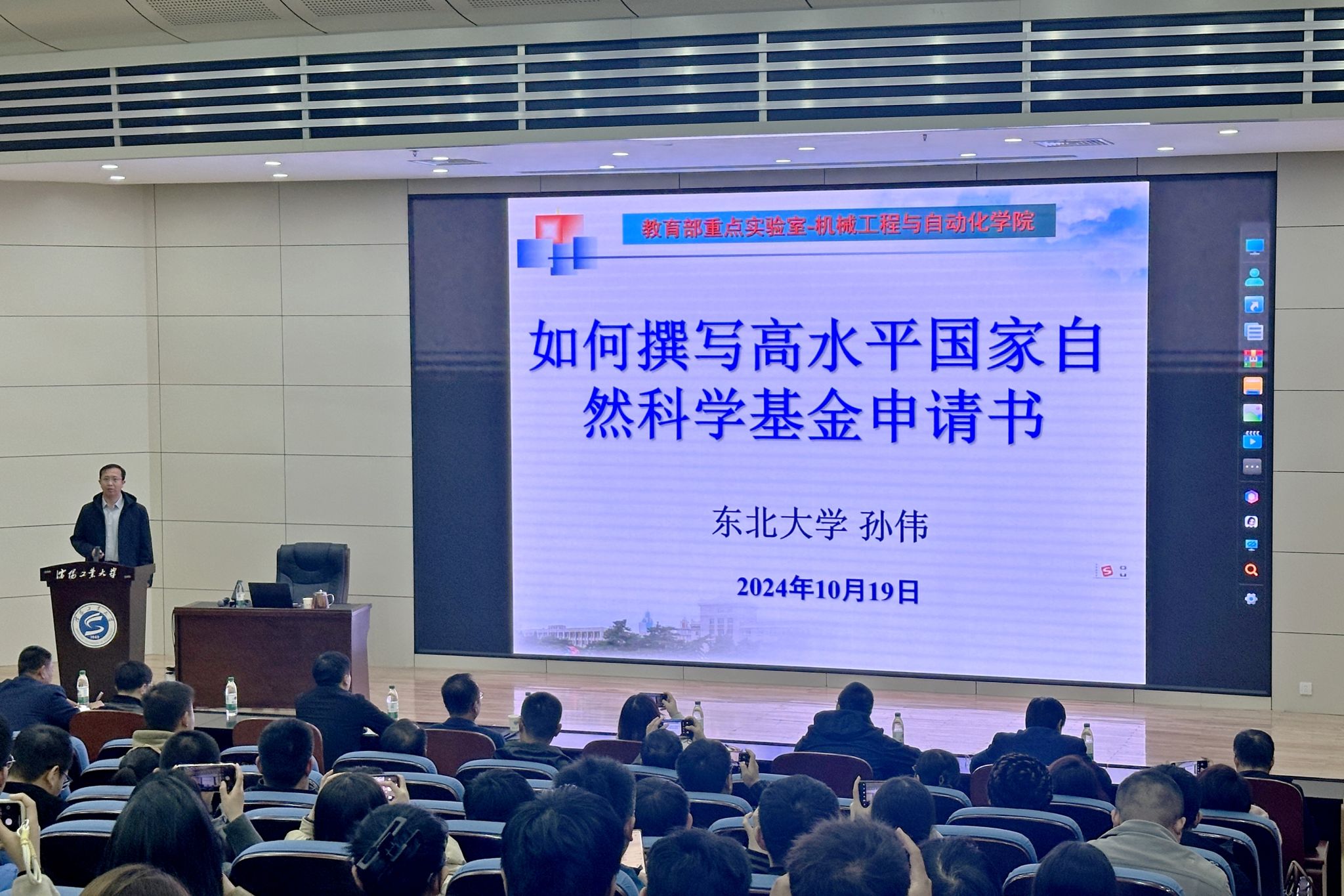 為進一步提升我校國家自然科學基金項目的申報質量,10月19日,學校在科學會堂舉辦了兩場2025年度國家自然科學基金項目申報專題講座。講座特邀東北大學孫偉教授,就“如何撰寫高水平國家自然科學基金申請書”進行了深入細致的交流與指導。黨委常委、副校長臧喜民出席會議,科學技術研究院有關負責同志,以及各二級單位的相關負責人、申報教師代表等200余人參加了會議。會議由科學技術研究院院長閆明主持。
