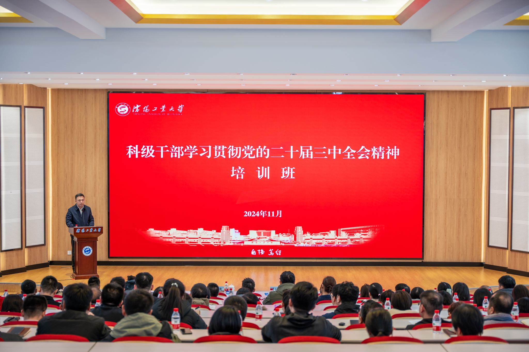 11月27日下午,學校黨委在教學樓E-301舉辦科級干部學習貫徹黨的二十屆三中全會精神培訓班開班式暨首場專題報告,黨委書記賈玉明出席開班式并作動員講話,黨委常委、組織部部長王彪主持會議,全校科級干部、七級普通管理崗干部參加。