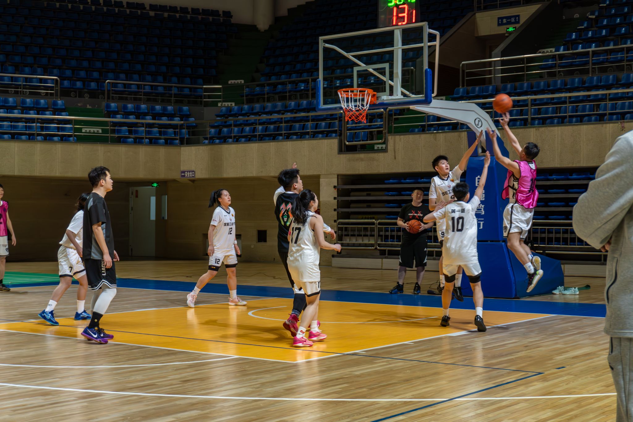 賽場上,女籃隊員們與自己的輔導員組成聯隊,以樓宇為單位進行計時投籃比賽,隊員們展現出的投籃技巧和團隊協作能力贏得了現場的陣陣掌聲。此外,現場師生還與校女籃隊員進行了一場5V5的友誼比賽,雙方技巧嫻熟、配合默契,在場上進攻犀利、防守嚴密,呈上了一場精彩的比賽。