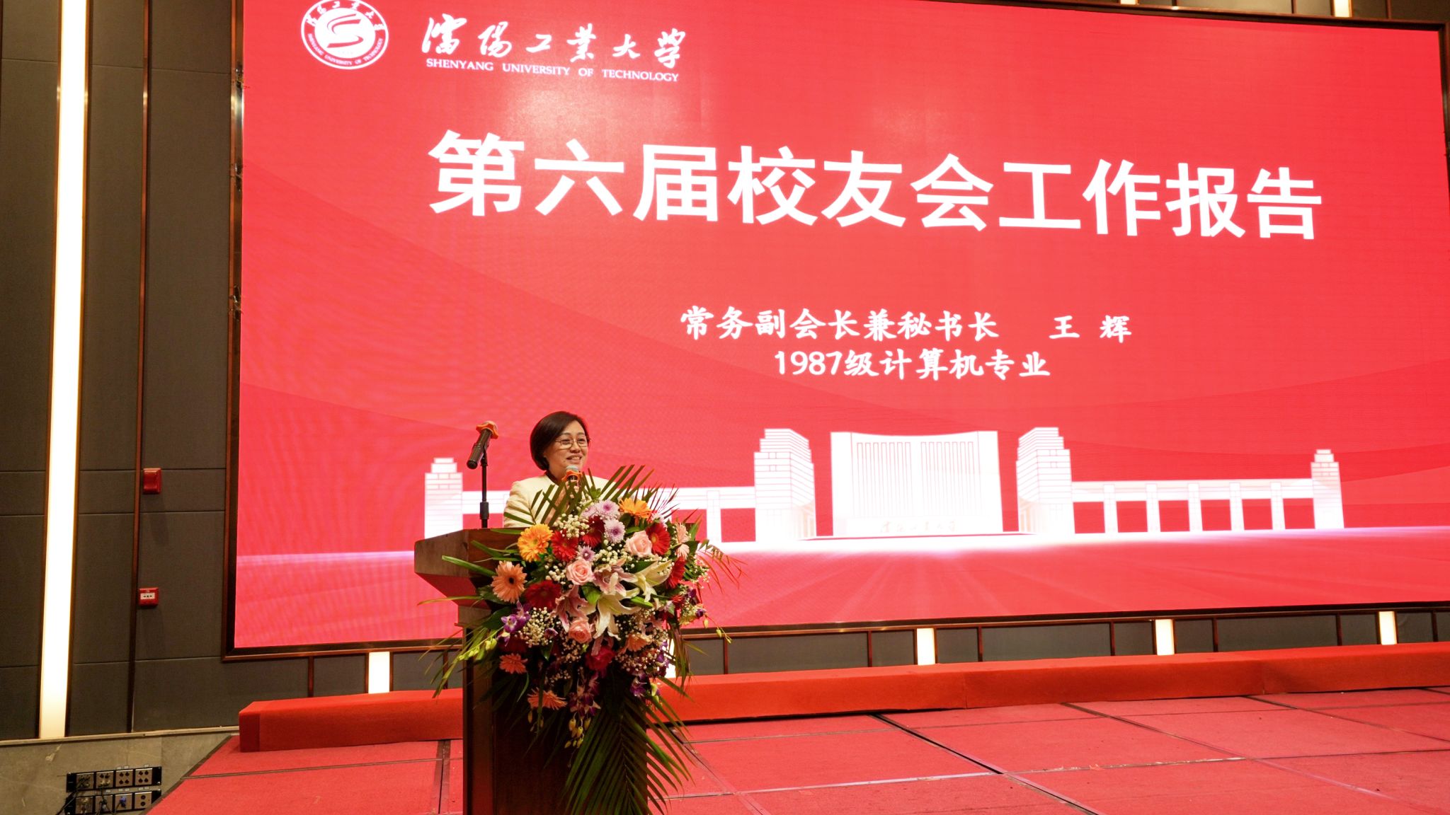 會上,沈陽校友會秘書長、1987級計算機專業校友、沈陽飛行船數碼噴印設備有限公司總經理王輝致辭并作沈陽校友會第六屆理事會工作報告。她從完善組織架構、擴大校友會規模,發揮學院分會職能、搭建交流平臺,修訂校友會章程、助力母校發展等方面總結沈陽校友會第六屆理事會工作。