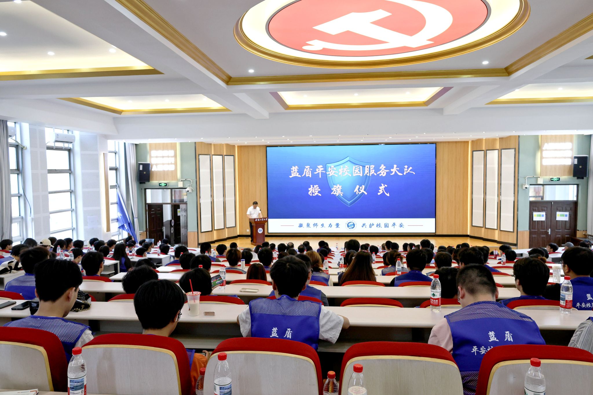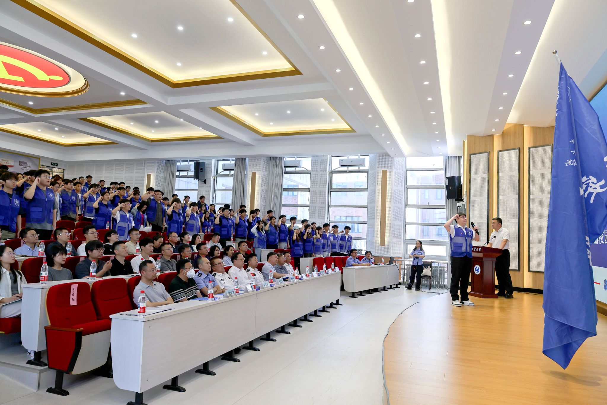 為有效健全校園安全防控體系,切實發揮廣大學生在平安校園建設中的積極作用,強化自我教育、自我管理、自我服務職能和群防群治、聯防聯治優勢,打造平安和諧校園,保障高質量發展,6月6日下午,學校在教學樓E301舉行了沈陽工業大學藍盾平安校園服務大隊授旗儀式。黨委書記賈玉明出席并講話,沈陽市公安局駐校專員、開發區消防大隊專職參謀、學校相關職能部門負責人、各學院學生工作負責人參加會議。會議由黨委常委、副校長王彪主持。