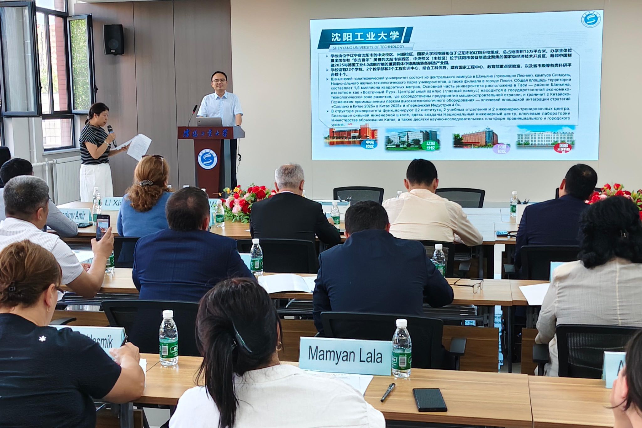 6月9日,俄語國家大學校長決策能力提升研修班學員到我校參訪,研修班代表團由來自烏茲別克斯坦、哈薩克斯坦、亞美尼亞的19名學員及2名帶隊教師組成,學員均為當?shù)亟逃賳T和高校負責人。黨委常委、副校長臧喜民在啟智樓409會議室親切會見了來賓并召開了座談會。沈陽師范大學國際交流合作處處長王新陪同參訪。