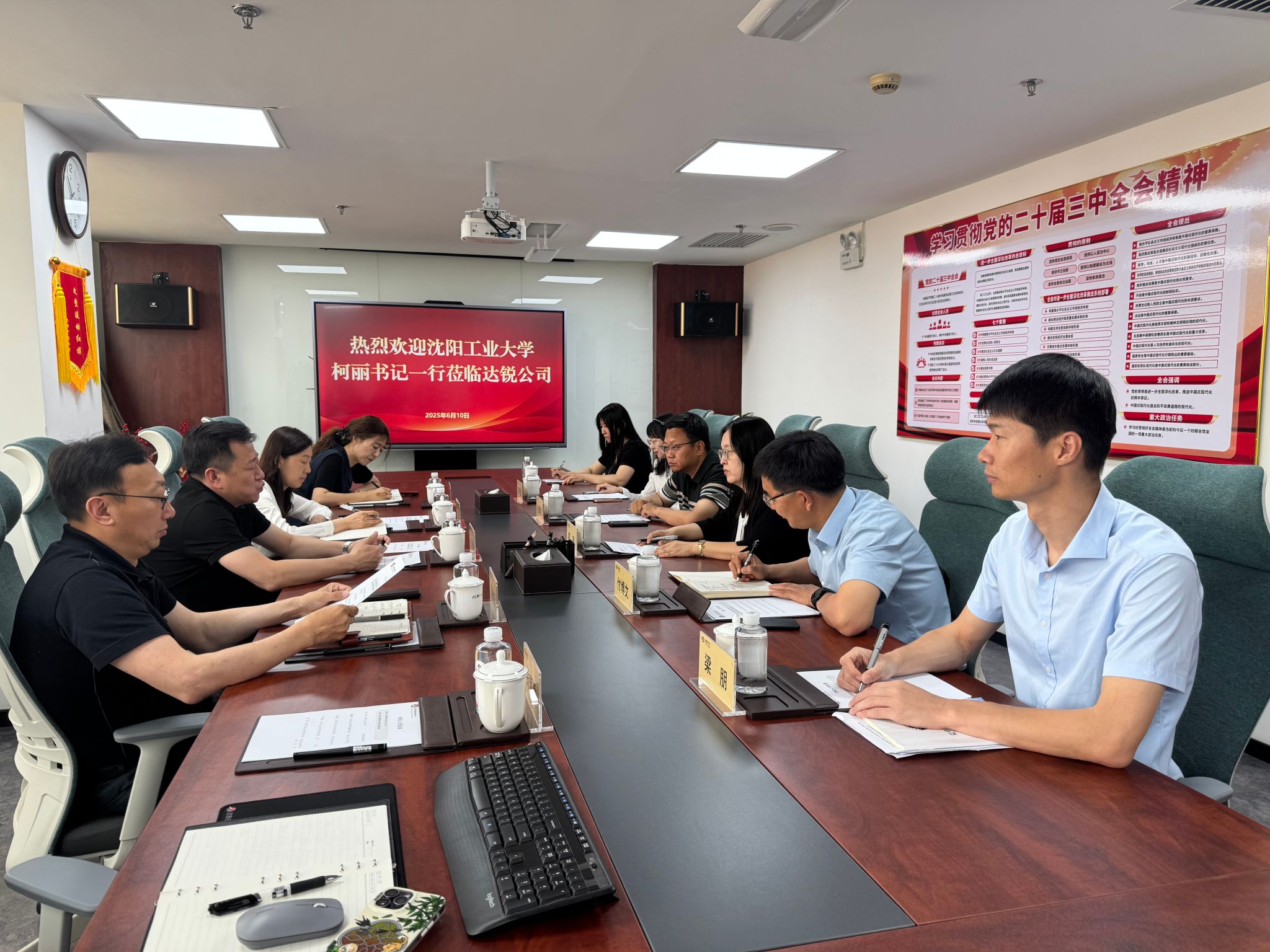 在沈陽產業投資發展集團與沈陽達銳投資管理有限公司,孫振宇介紹了沈陽產投集團的發展概況,并就校企雙方建立互通互助互學互鑒的互聯體、人才培養培訓基地、科技成果轉化孵化基地和定期交流合作機制等進行了交流研討,雙方達成合作意向。劉新文介紹了沈陽達銳投資公司的發展歷程、業務范圍和人才招聘需求情況。