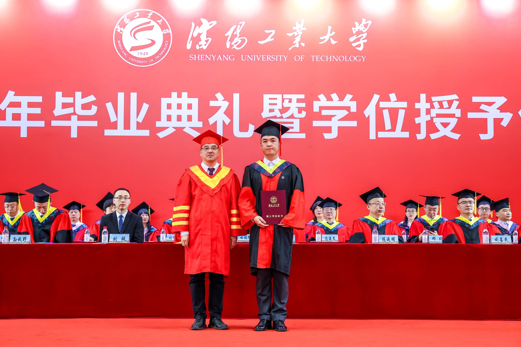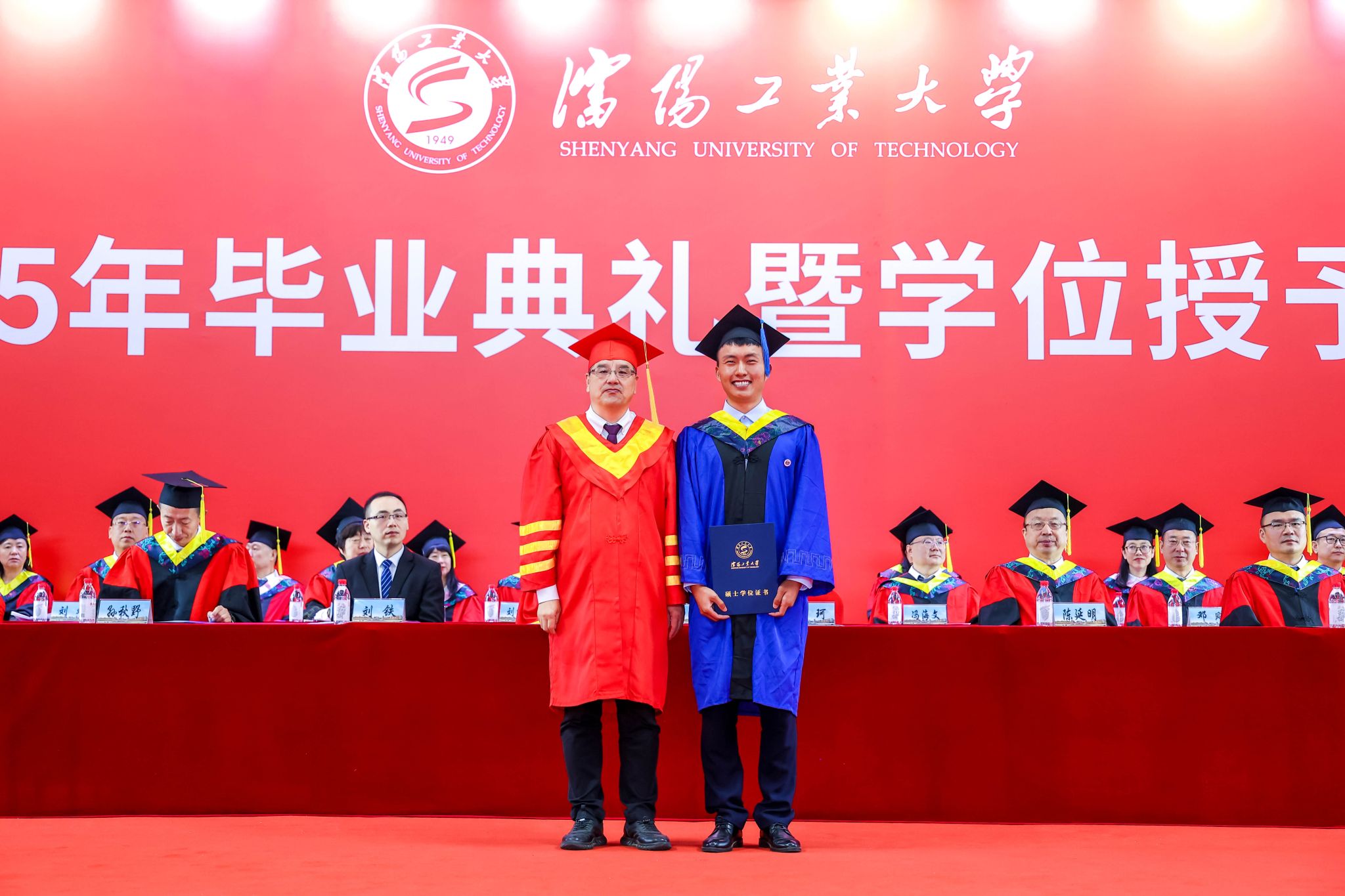 夏明超宣讀2025屆學生畢業授位決定文件及遼寧省優秀畢業生表獎文件。校領導與校友代表共同為遼寧省優秀畢業生頒獎,表彰他們在學業與綜合發展中取得的優異成績。
