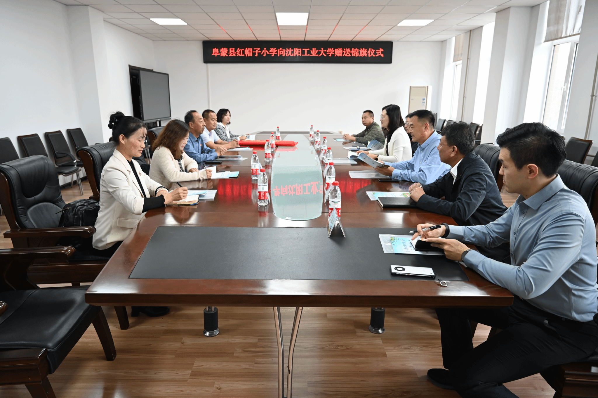 10月8日,阜蒙縣紅帽子小學校長何旭光一行5人到我校對長期以來的定點幫扶表示感謝并送上錦旗。黨委副書記趙璟出席贈送儀式。工會、團委、管理學院有關負責同志和駐村工作隊成員參加活動。