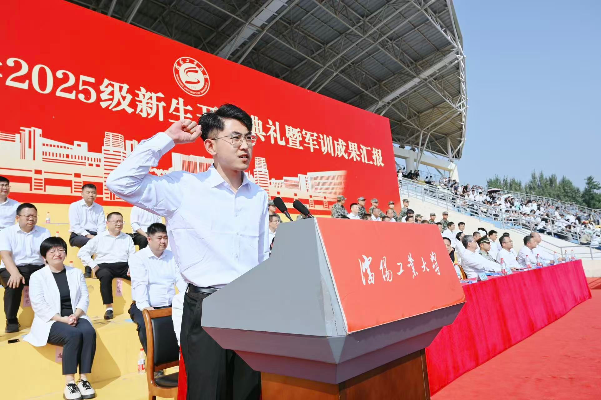 在卓越工程師學院林飛龍同學的帶領(lǐng)下,全體2025級新生進行莊嚴宣誓,他們用鏗鏘有力的聲音,展現(xiàn)出新一代“工大人”昂揚向上的精神風貌和為夢想奮斗的堅定決心。