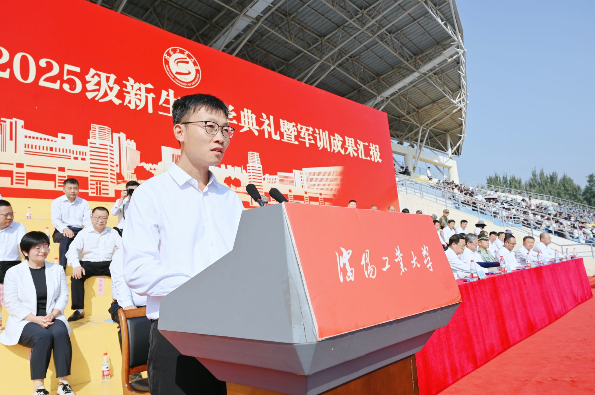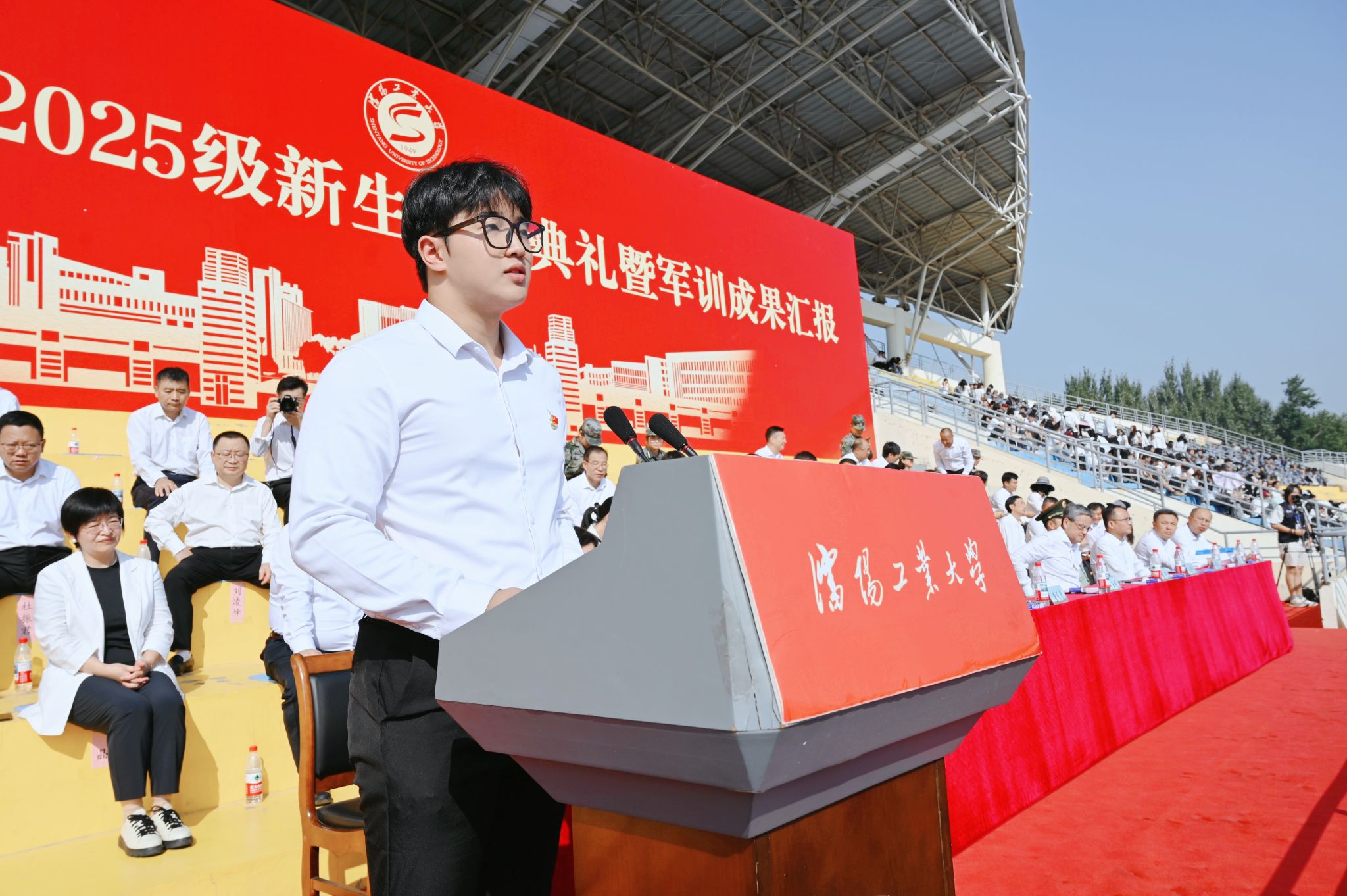 校學生會執(zhí)行主席、建筑與土木工程學院2022級本科生李帝頡作為在校生代表發(fā)言。他號召新生們將個人理想融入國家發(fā)展大局,在服務(wù)強國建設(shè)、助力東北振興的時代征程中,書寫無愧于青春、無愧于時代的精彩答卷。