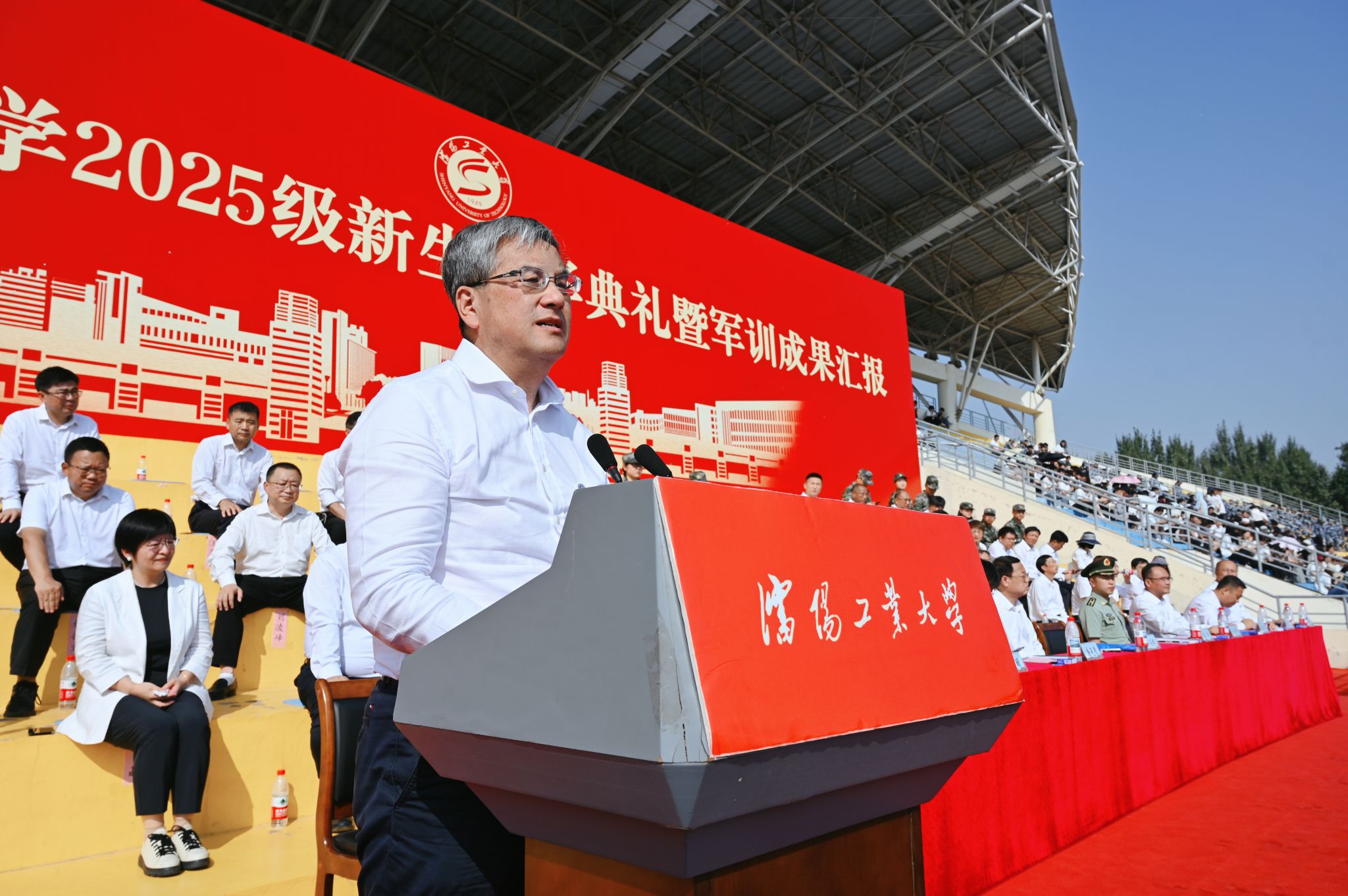 張珂代表學校向新同學表示熱烈歡迎和誠摯祝賀。他充分肯定了同學們在軍訓中展現(xiàn)出的昂揚斗志和堅韌意志,勉勵大家要繼續(xù)保持這種頑強拼搏的精神風貌,在今后的學習生活中勇往直前、不斷超越自我。他強調(diào),新時代的青年學子肩負著實現(xiàn)中華民族偉大復興的歷史使命,希望大家能夠珍惜寶貴的大學時光,立報國之志、修立身之德、求學問之真、創(chuàng)未來之新,在工大沃土上收獲成長。張珂向2025級同學們提出四點期望,一是要立報國之志,做心懷家國的追夢人。要厚植家國情懷,砥礪強國之志,將個人理想融入國家發(fā)展偉業(yè),在實現(xiàn)中華民族偉大復興的征程中找準人生坐標。二是要修立身之德,做全面發(fā)展的踐行者。要把“立德修身”放在首位,恪守學術(shù)誠信、培養(yǎng)團隊精神、常懷感恩之心,做“有本事、更有良心”的工大人。三是要求學問之真,做知行合一的實干者。要勤于思考、勇于創(chuàng)新,善于在實踐中檢驗真理,成長為“善于解決復雜工程問題”的工程師和具有“突出技術(shù)創(chuàng)新能力”的實干家。四是要創(chuàng)未來之新,做勇于探索的開拓者。要主動擁抱時代變化,敢于突破傳統(tǒng)思維的邊界,在科技創(chuàng)新的浪潮中開拓進取,以敢為人先的精神探索未知領(lǐng)域,爭做引領(lǐng)時代的先鋒。