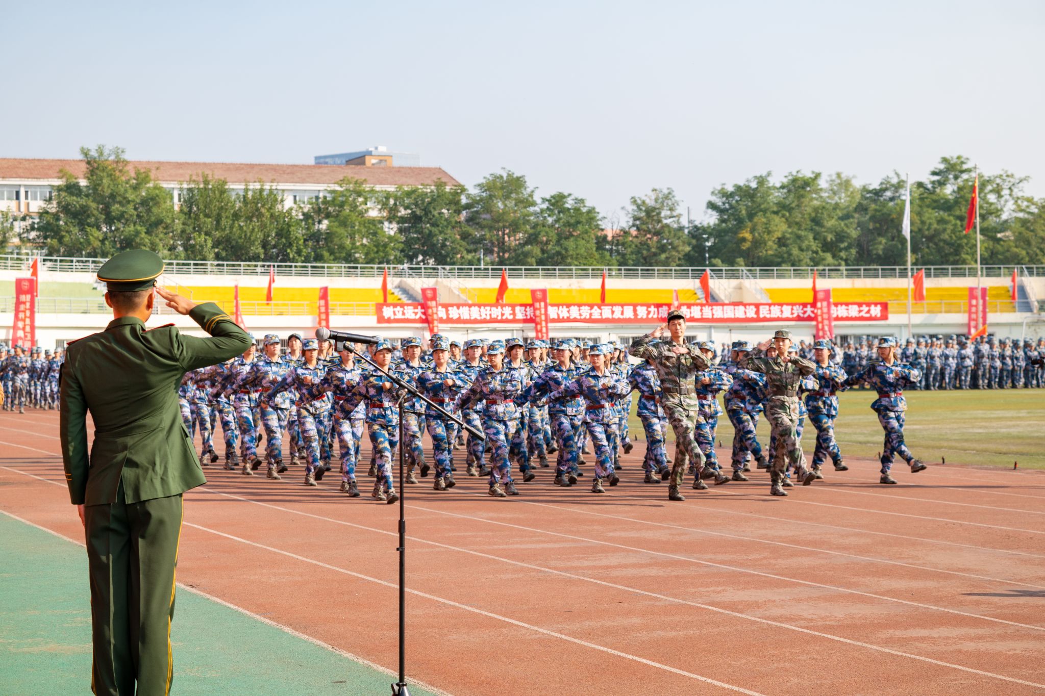 伴隨著激昂的分列式進行曲,2025級新生們以整齊劃一的隊列依次通過主席臺。本次軍訓共53個訓練方隊,在各學院學生工作負責人與新生輔導員的帶領(lǐng)下,各方隊步伐堅定有力、口號鏗鏘嘹亮,接受主席臺上領(lǐng)導和老師們的檢閱。