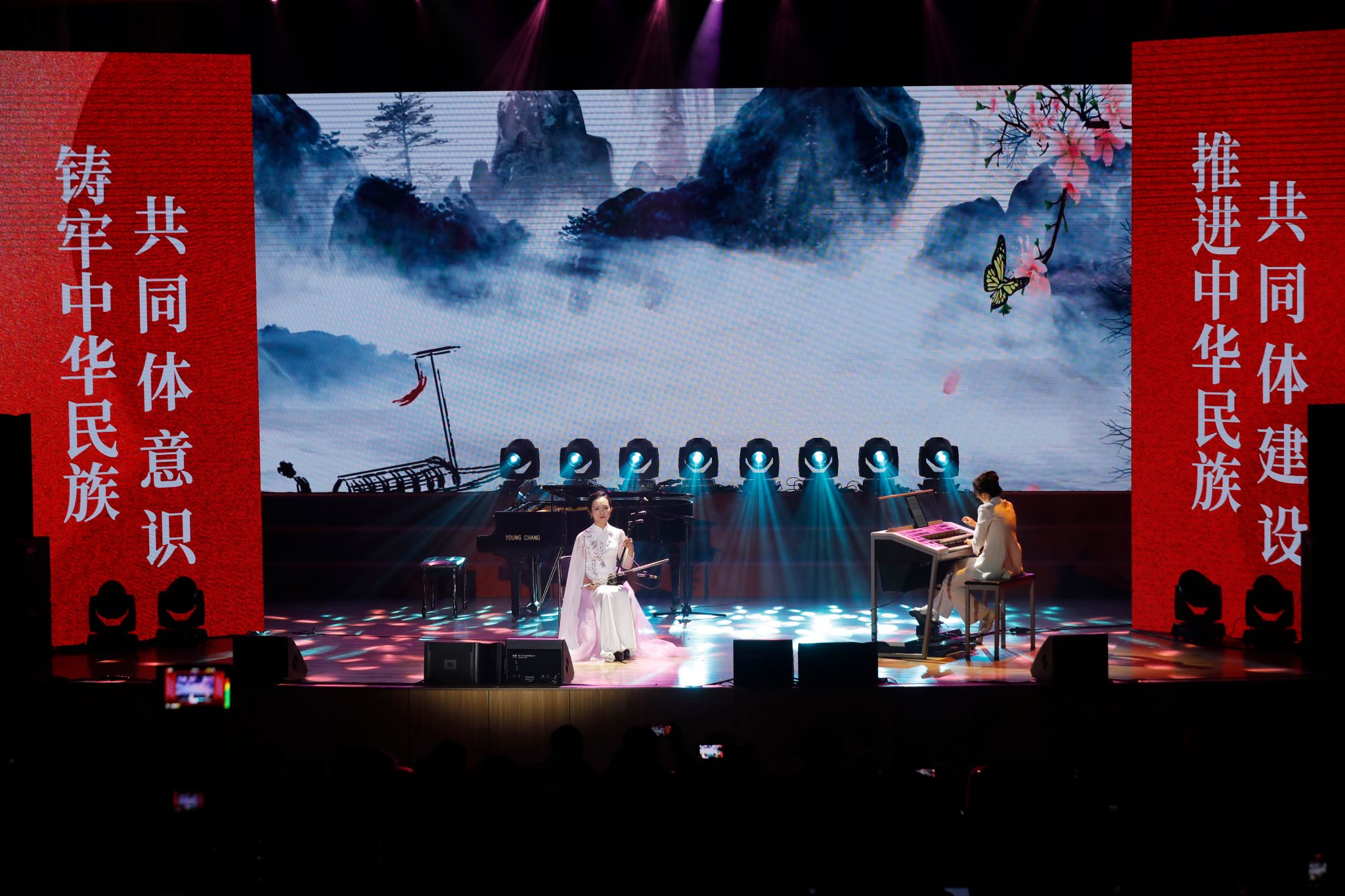 11月11日晚,沈陽工業大學聯合遼寧省音樂家協會、沈陽市音樂家協會共同舉辦的鑄牢中華民族共同體意識專題美育項目“華韻新聲·共鑄同心”音樂會在工大會堂精彩上演。沈陽工業大學黨委副書記柯麗,遼寧省音樂家協會副主席、沈陽音樂學院副院長龐渤,遼寧省音樂家協會秘書長劉蕾,沈陽音樂學院音樂教育學院院長吳家軍,學校黨委統戰部、團委以及美育中心有關同志,師生代表近800人共同觀看演出。