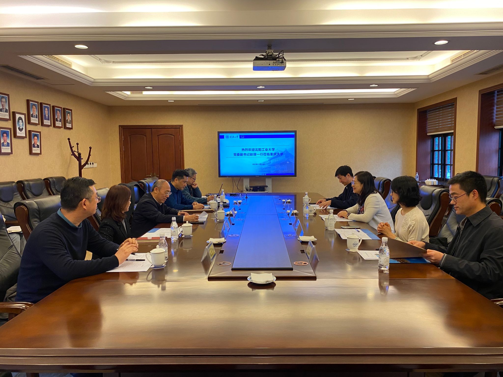 在重慶期間,趙璟一行還前往重慶大學調研,參觀了重慶大學校史館,了解重慶大學的建校歷史及發展歷程。座談會上,重慶大學黨委常委、副校長鄧紹江代表學校致歡迎詞,并介紹了學校總體情況。趙璟對重慶大學的熱情接待表示感謝,同時介紹了沈陽工業大學辦學基本情況和此次調研目的,并表示重慶大學近年來堅持高質量發展,取得了令人矚目的發展成就,是地方高校學習的榜樣。與會人員就校友文化培育、保密管理、國防科研、基層黨建等方面工作進行了深入交流。本次調研對標一流大學,明確調研方向,找準重點問題,學校將把調研成果運用到實際工作中,促進教育事業高質量發展,向第十三次黨代會獻禮。