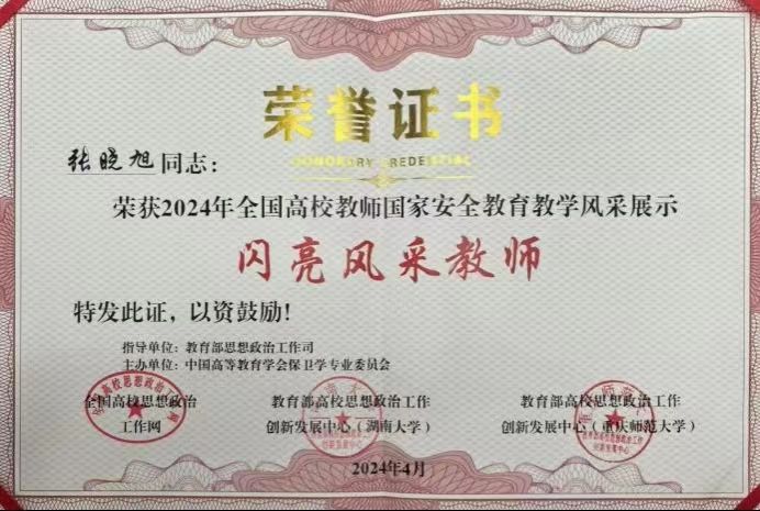 4月10日至12日,由教育部思想政治工作司指導(dǎo),中國高等教育學(xué)會保衛(wèi)學(xué)專業(yè)委員會、全國高校思想政治工作網(wǎng)等單位聯(lián)合主辦的全國高校教師國家安全教育教學(xué)風(fēng)采現(xiàn)場展示活動在重慶師范大學(xué)舉行。現(xiàn)場展示活動共評選出特別展示教師6位,閃亮風(fēng)采教師14位,優(yōu)秀風(fēng)采教師17位,我校輔導(dǎo)員張曉旭獲評“閃亮風(fēng)采教師”,進(jìn)入全國20強(qiáng),這也是學(xué)校首次在全國高校國家安全教育教學(xué)風(fēng)采展示活動中獲獎,實(shí)現(xiàn)歷史性突破。