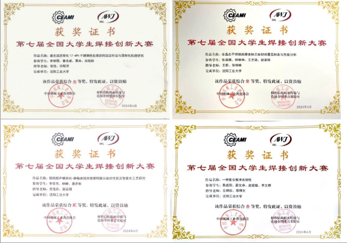 我校派出的四支參賽隊伍緊密結合賽事題目要求和焊接技術發展前沿,精心準備,不斷改進作品,克服困難認真備賽,最終在激烈角逐中脫穎而出,其中功能材料專業2022級學生張靖娜團隊獲得固定命題一等獎,焊接技術與工程專業2022級學生李佳芮團隊獲得自由命題二等獎,焊接技術與工程專業2021級學生易成陽和李錦程團隊分別獲得固定命題及自由命題三等獎。本次比賽彰顯了我校學生的開拓創新意識和在先進裝備制造領域的動手能力和創新實踐能力,展現出學校焊接技術與工程專業應用型人才培養的質量和水平。今后,我校將進一步關注學生實踐能力和創新意識培養,增強學生團隊合作精神,努力培養復合型創新人才。