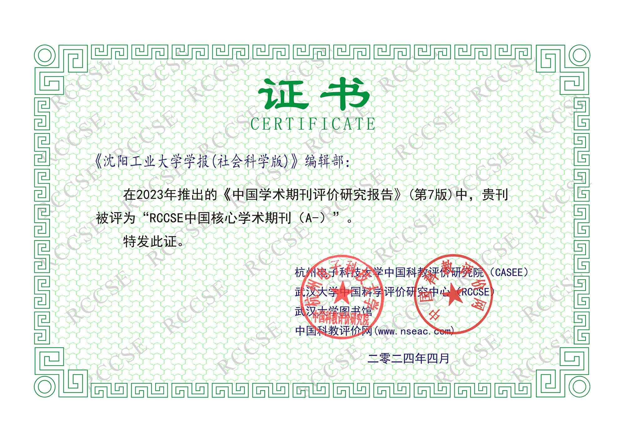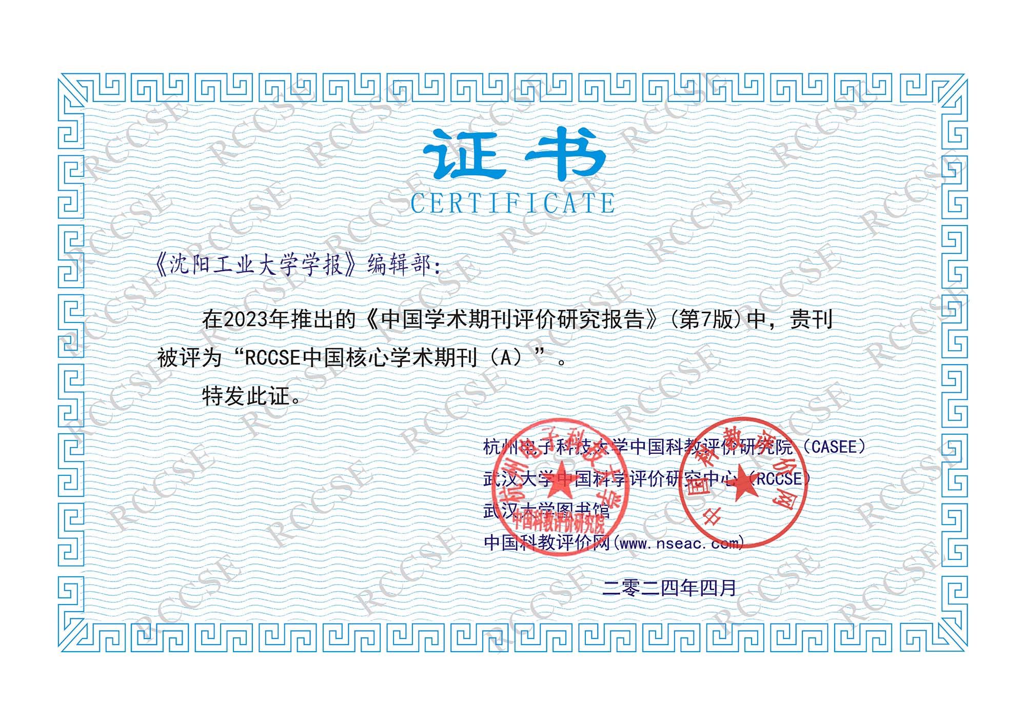 本次評價由中國科學評價研究中心(RCCSE)組織實施,參評期刊共6622種,是繼2008年以來的第7次評價。《沈陽工業大學學報》在所屬的“工程與技術綜合”類215種期刊中居第29位,為A等;《沈陽工業大學學報(社科版)》在所屬的“社會科學綜合”類307種期刊中居第92位,為A-等。