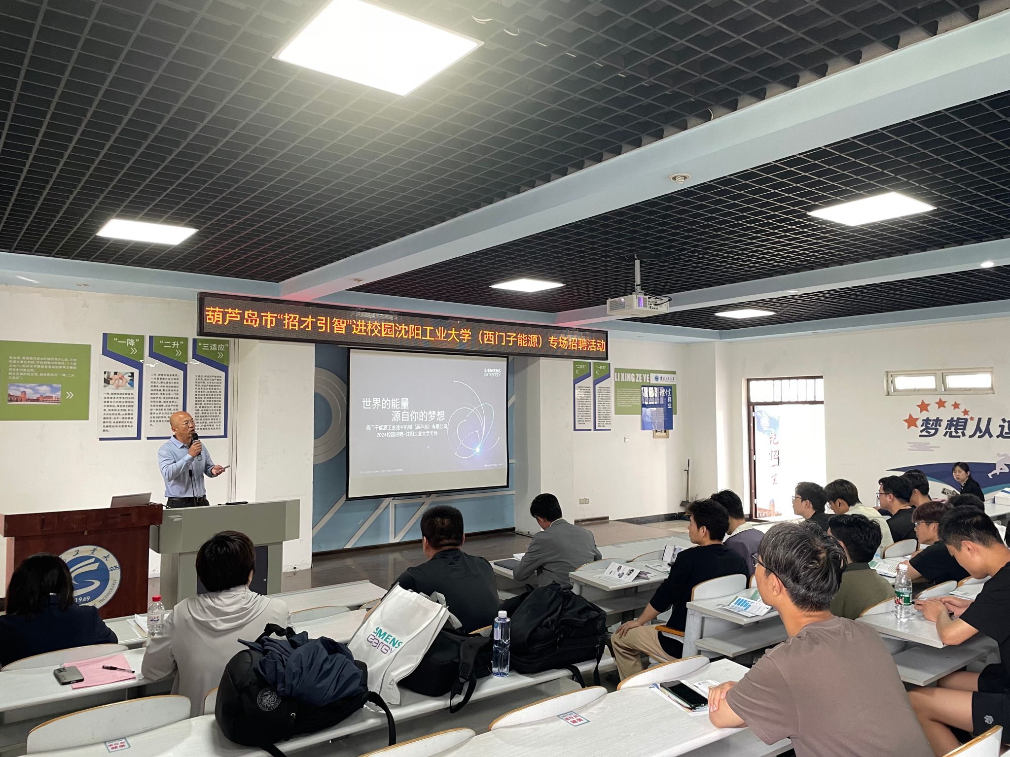 葫蘆島市“招才引智”進校園沈陽工業(yè)大學(西門子能源)專場招聘會上,葫蘆島市委組織部郭楠部委對葫蘆島市政策環(huán)境進行解讀,西門子能源工業(yè)透平機械(葫蘆島)有限公司王秉巖進行了宣講,學生現(xiàn)場投遞簡歷,校企互動氣氛熱烈。