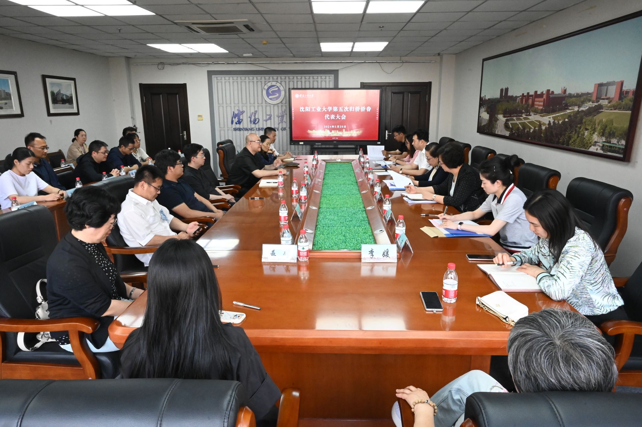 5月29日下午,我校第五次歸僑僑眷代表大會在校部429會議室召開。沈陽市僑聯黨組書記、主席張梅,辦公室主任安美麟,組織建設工作部三級調研員于曉黎出席會議。學校黨委常委、黨委統戰部部長李媛媛,第四屆僑聯主席戴衛東以及全體僑聯成員參加會議。大會由第四屆僑聯秘書長張楠楠主持。