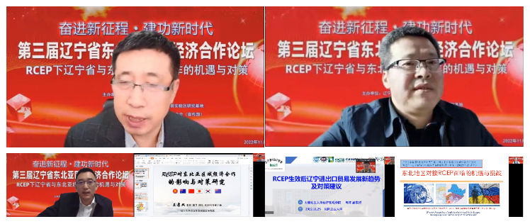 肖明江對基地取得的學(xué)術(shù)研究成果給予了充分肯定,希望基地要發(fā)揮學(xué)科優(yōu)勢,緊密結(jié)合我省經(jīng)濟社會發(fā)展需求,積極組織開展社會科學(xué)研究,形成高水平研究成果和有效的咨政建議,為遼寧全面振興全方位振興獻(xiàn)計獻(xiàn)策。論壇以“RCEP下遼寧省與東北亞經(jīng)濟合作的機遇與對策”為主題,遼寧省商務(wù)廳外貿(mào)管理處處長蘇國輝,遼寧大學(xué)教授、博士生導(dǎo)師王厚雙,大連理工大學(xué)經(jīng)濟管理學(xué)院副教授陳陣,黑龍江省社會科學(xué)院東北亞研究所二級研究員笪志剛等4位專家學(xué)者分別作了題為《以日韓合作為重點,擴展遼寧與RCEP國家經(jīng)貿(mào)合作新空間》《RCEP對東北亞區(qū)域經(jīng)濟合作的影響與對策思考》《RCEP生效后遼寧進(jìn)出口貿(mào)易發(fā)展新趨勢及對策建議》《東北地區(qū)對接RCEP面臨的機遇與挑戰(zhàn)》的學(xué)術(shù)報告。