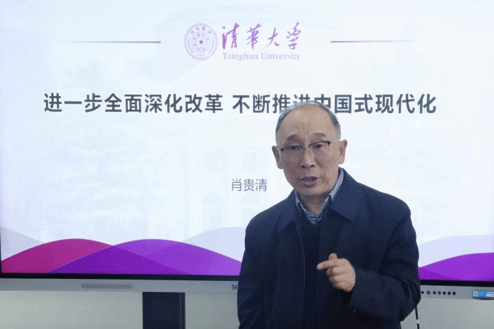 為深入學習貫徹黨的二十屆三中全會精神,扎實推進黨的二十屆三中全會精神進教材、進課堂、進頭腦,11月15日,馬克思主義學院特別邀請中央馬克思主義理論研究和建設工程首席專家、清華大學肖貴清教授以“進一步全面深化改革 不斷推進中國式現代化”為題開展講座。講座由馬克思主義學院院長韓影主持。