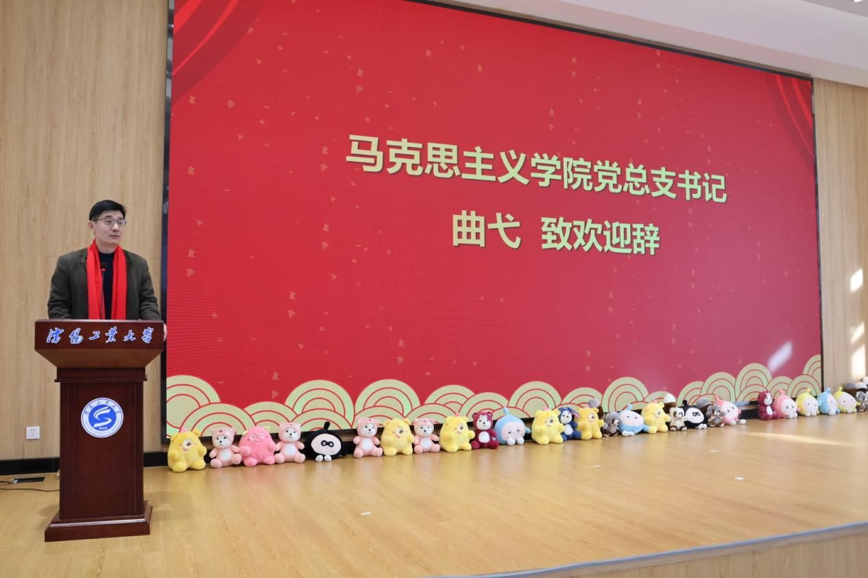 活動(dòng)伊始,馬克思主義學(xué)院黨總支書記曲弋致辭。他表示,在過去的一年里,馬克思主義學(xué)院取得了優(yōu)異的成績(jī),成功入選為遼寧省第二批高校示范馬克思主義學(xué)院,在明確新的研究方向的同時(shí)與相關(guān)單位簽訂了大思政課實(shí)踐教學(xué)基地協(xié)議,承辦了一系列省市級(jí)大型活動(dòng)。此外,學(xué)院在黨建、教學(xué)、科研等工作中也取得了長(zhǎng)足的發(fā)展和進(jìn)步,國(guó)社科、省社科基金項(xiàng)目穩(wěn)中求進(jìn)。今年,學(xué)院成立師生宣講團(tuán)并成功舉辦了主題宣講會(huì)、“四個(gè)自信”虛擬實(shí)踐教學(xué)中心正式投入使用并開展了豐富多彩的主題活動(dòng)。最后,他號(hào)召全院師生要著力發(fā)揮學(xué)院理論研究和宣傳傳播優(yōu)勢(shì),傳承紅色基因,厚植工大精神,推動(dòng)大中小思政課一體化建設(shè),加強(qiáng)輻射帶動(dòng)作用,將馬克思主義學(xué)院建院10周年與工大建校75周年慶祝紀(jì)念活動(dòng)充分融合,以建院10周年為新的起點(diǎn),勇于進(jìn)取、一馬當(dāng)先,提升辦學(xué)水平,打造學(xué)院文化,以嶄新的面貌和昂揚(yáng)向上的姿態(tài)來面對(duì)新一年的機(jī)遇與挑戰(zhàn)。