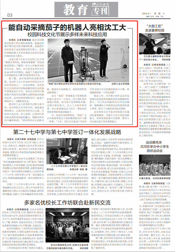 據(jù)了解,此次校園科技創(chuàng)新成果展,是沈陽工業(yè)大學2024年科技文化節(jié)的系列活動之一。在活動現(xiàn)場,有的團隊正在向同學們詳細講解科技作品的制作原理及運行方式,有的在為同學們現(xiàn)場展示科技作品的操作過程和基本技能的運用,還有的則帶領同學們一起進行現(xiàn)場學習、實操科技作品。