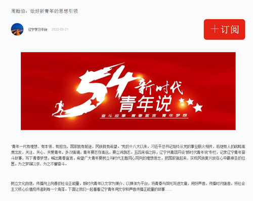 近日,學(xué)習(xí)強(qiáng)國(guó)遼寧學(xué)習(xí)平臺(tái)以《做好新青年的引領(lǐng)》為題,報(bào)道了我校經(jīng)濟(jì)學(xué)院輔導(dǎo)員周翰伯老師。文中指出,在五四來臨之際,遼寧共青團(tuán)開設(shè)“新時(shí)代青年說”專欄,記錄遼寧青年奮斗故事,寫下青春夢(mèng)想,喊出青春宣言,希望廣大青年要樹立與時(shí)代主題同心同向的理想信念,把國(guó)家強(qiáng)起來、實(shí)現(xiàn)民族復(fù)興放在心中最神圣的位置,為之夢(mèng)寐以求、為之不懈奮斗。周翰伯老師始終以做好新青年的思想引領(lǐng)為己任,除負(fù)責(zé)本職工作外,他長(zhǎng)期堅(jiān)持通過微團(tuán)課、微黨課、微網(wǎng)文評(píng)論等方式,向廣大青年宣傳正能量,引導(dǎo)和教育青年樹立正確的價(jià)值觀。他還在多個(gè)網(wǎng)絡(luò)平臺(tái)發(fā)布文章、視頻等微作品百余件,獲得支持評(píng)論數(shù)逾10萬(wàn),通過努力,讓廣大青年自覺同黨和國(guó)家站在一起,發(fā)自肺腑地全身心參與到中國(guó)特色社會(huì)主義事業(yè)建設(shè)中來。疫情期間,他通過網(wǎng)文宣傳,幫助廣大青年正確認(rèn)識(shí)和面對(duì)疫情,教育青年學(xué)生們做好自我防護(hù),履行公民義務(wù),不信謠、不傳謠,保持樂觀心態(tài),堅(jiān)定必勝信念。