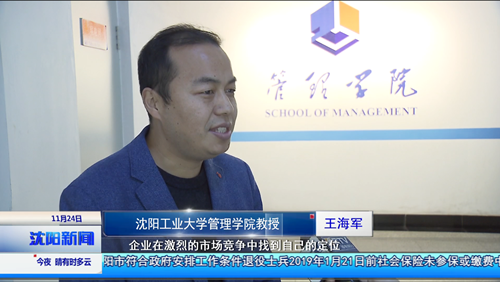 11月24日晚,沈陽廣播電視臺《沈陽新聞》播放了對我校管理學院教授、博士生導師王海軍的專訪。沈陽電視臺記者就我市中小企業如何提升競爭優勢和可持續發展動力,政府如何為中小企業發展營造良好環境對王海軍進行了專題采訪。