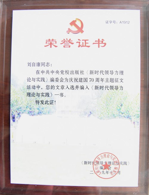 《新時代領導力理論與實踐》一書,是在開展“不忘初心·牢記使命”主題教育活動的關鍵階段,為慶祝中華人民共和國成立70華誕,總結各級領導干部和基層黨組織在實踐中的領導力運用以及在加強基層黨的建設,鞏固黨的群眾路線教育實踐活動的先進經驗、優秀理論成果,由《新時代領導力理論與實踐》編委會編寫的,由中共中央黨校出版社出版的一部經典著作。我校黨委書記劉自康撰寫的文章“堅守對黨忠誠 做到‘兩個維護’”受《新時代領導力理論與實踐》編委會邀請,并組織黨建專家教授審議,最終被選入該書的教育專題,已于近期在京出版。