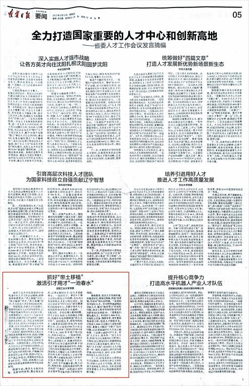 2月17日,遼寧日?qǐng)?bào)刊發(fā)我校《抓好“帶土移植” 激活引才用才“一池春水”》文章。