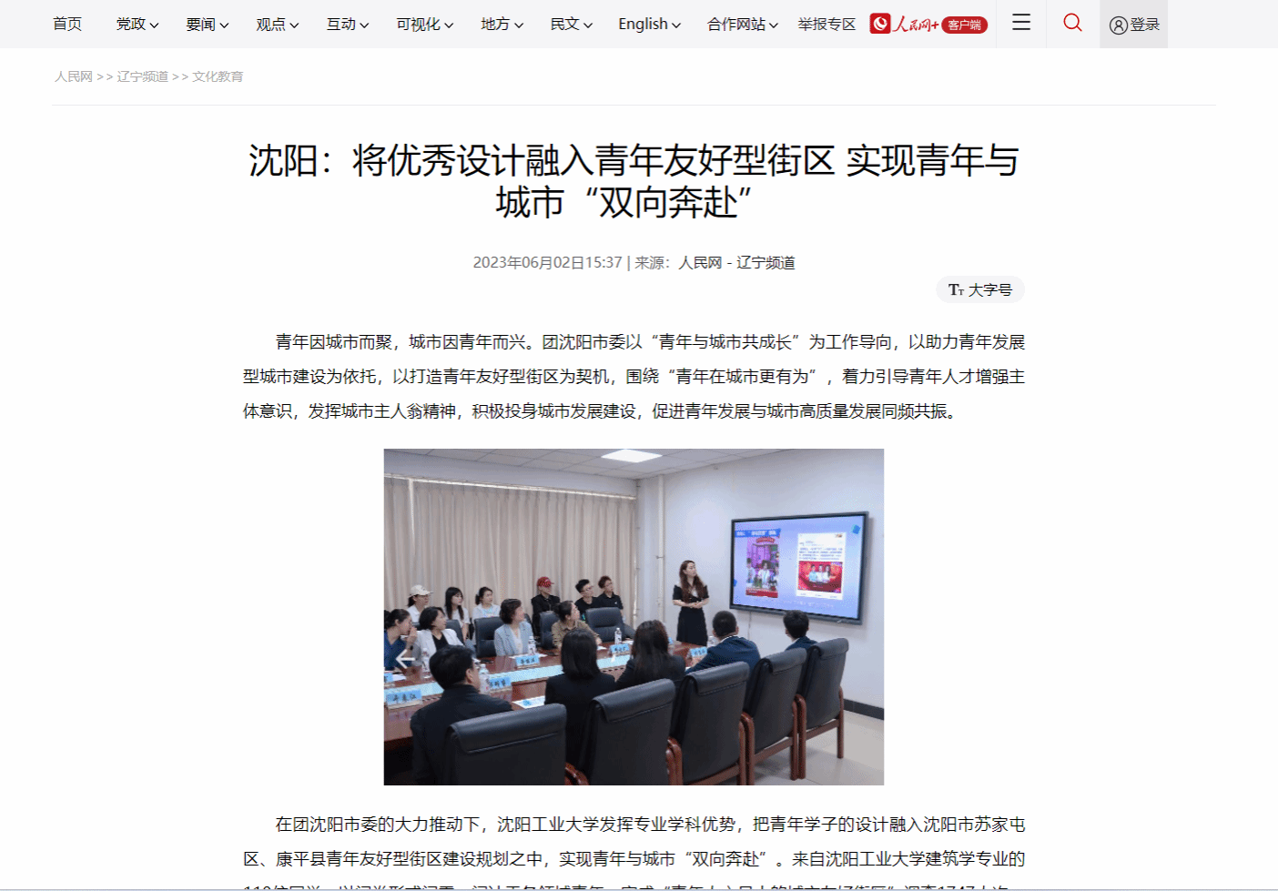 在團沈陽市委的大力推動下,沈陽工業(yè)大學(xué)發(fā)揮專業(yè)學(xué)科優(yōu)勢,把青年學(xué)子的設(shè)計融入沈陽市蘇家屯區(qū)、康平縣青年友好型街區(qū)建設(shè)規(guī)劃之中,實現(xiàn)青年與城市“雙向奔赴”。來自沈陽工業(yè)大學(xué)建筑學(xué)專業(yè)的110位同學(xué),以問卷形式問需、問計于各領(lǐng)域青年,完成“青年人心目中的城市友好街區(qū)”調(diào)查1747人次。同學(xué)們根據(jù)調(diào)研數(shù)據(jù)及相關(guān)建議,完成青年友好街區(qū)LOGO設(shè)計38個、蘇家屯區(qū)楓楊路友好街區(qū)設(shè)計18組、康平縣大遼圣市友好街區(qū)設(shè)計18組,以及青年友好建筑單體設(shè)計70個。