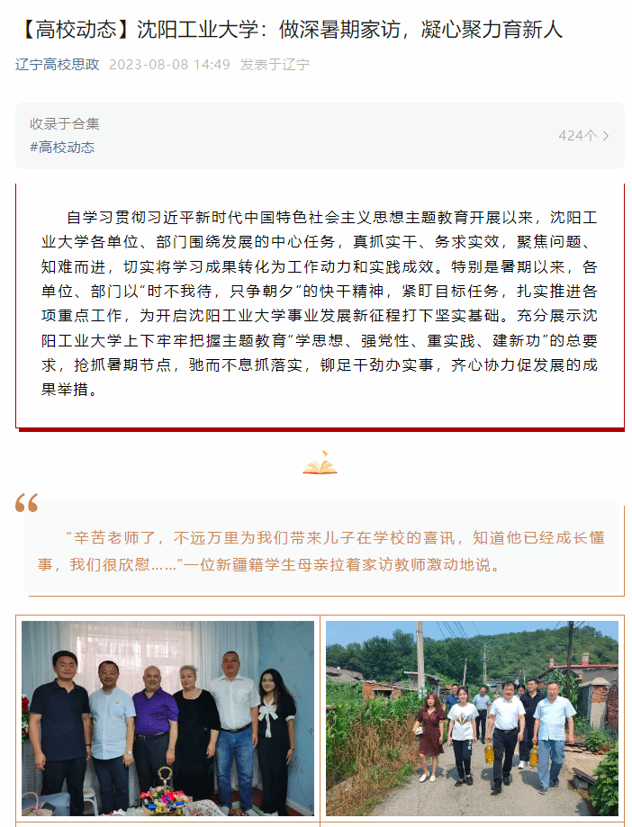 新聞來源:遼寧高校思政微信公眾號,2023年8月8日