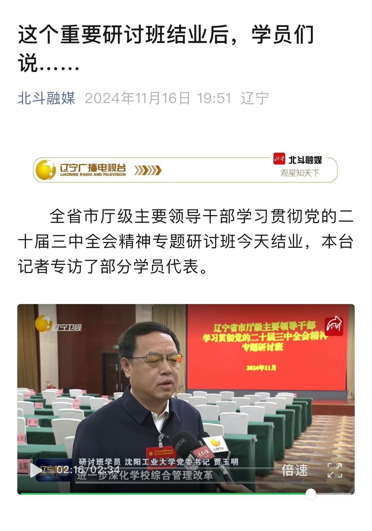11月16日,全省市廳級主要領導干部學習貫徹黨的二十屆三中全會精神專題研討班結業(yè),我校黨委書記賈玉明接受采訪。