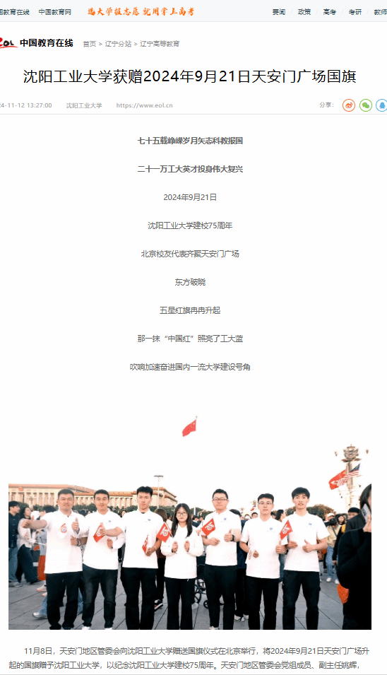 多家媒體對我校于11月8日獲贈2024年9月21日天安門廣場國旗進行追蹤報道。
