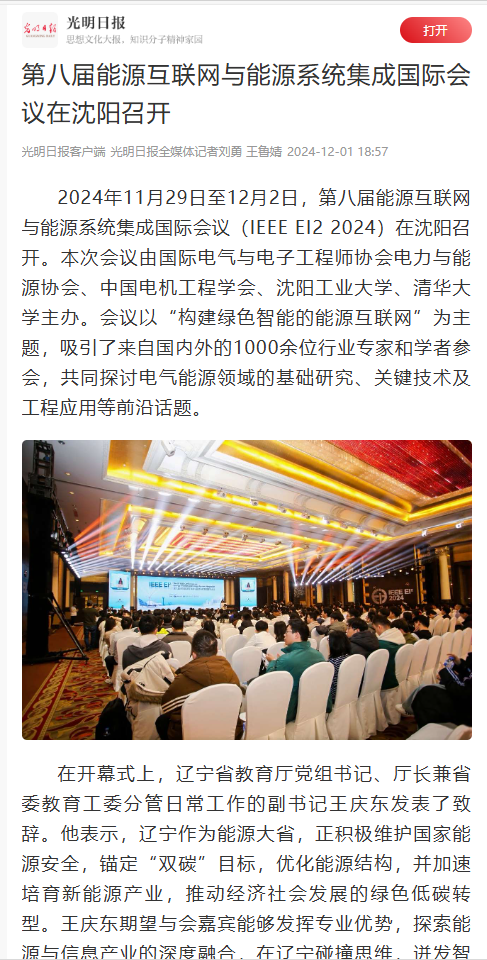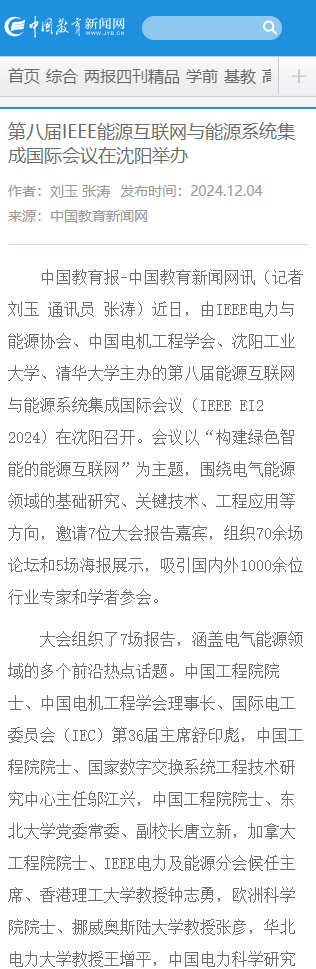 多家媒體對我校主辦的第八屆IEEE能源互聯(lián)網(wǎng)與能源系統(tǒng)集成國際會議進(jìn)行全方位報道。