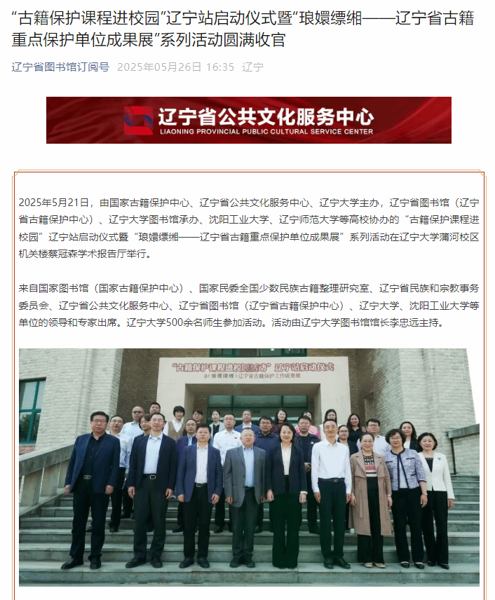 新聞來(lái)源:遼寧省圖書(shū)館訂閱號(hào) 2025年5月26日