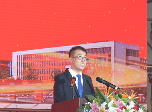機械工程學院博士生劉海超作為學生代表發言。他表示,工大歷經七十載,有幸陪伴其八年。作為一名在校生,我們見證了工大矢志創新、碩果累累的歷程,見證了學校作為遼寧省首批區域一流高校,不斷向國內一流大學發起沖擊的歷程;我們工大學子早已融入了工大勵精圖治、銳意進取的隊伍,在母校的辛勤培育和老師們的諄諄教誨中,不斷收獲著自己的成長;我們將懷著對母校、所有領導老師以及校友前輩的感激之情,我們定會與母校一起奮進新時代,再譜新華章。