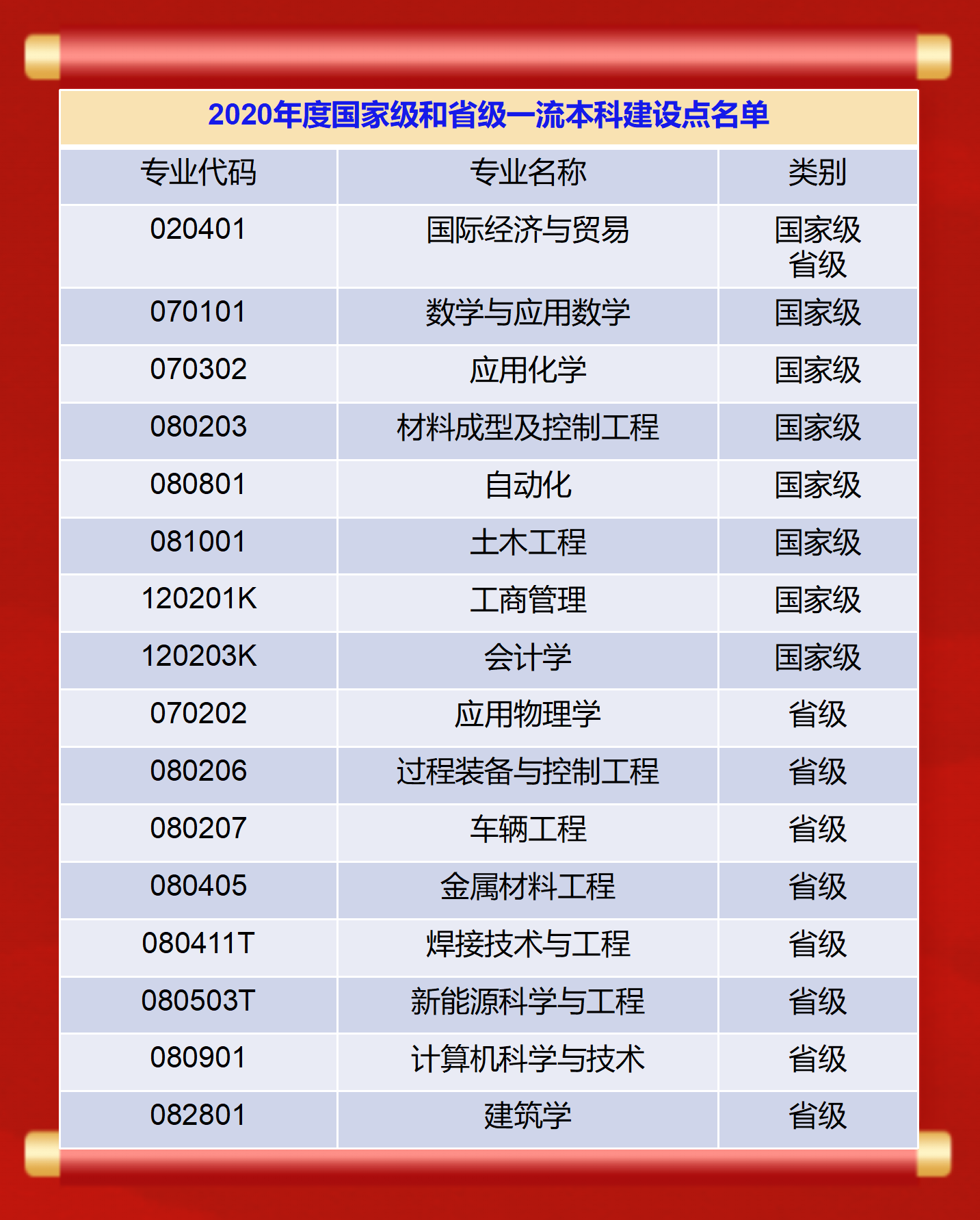 近日,教育部公布2020年度國家級、省級一流本科專業建設點名單,我校8個專業被認定為國家級一流本科專業建設點,9個專業被認定為省級一流本科專業建設點。